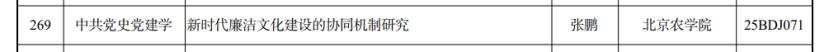 近日,全国哲学社会科学工作办公室正式公布了2025年度国家社会科学基金年度项目立项结果。我院张鹏老师主持申报的《新时代廉洁文化建设的协同机制研究》课题成功获得一般项目立项。该项目是我院在国家社科基金项目申报上的历史性突破,标志着我院在人文社科领域,特别是党的创新理论研究方面取得了重大进展。